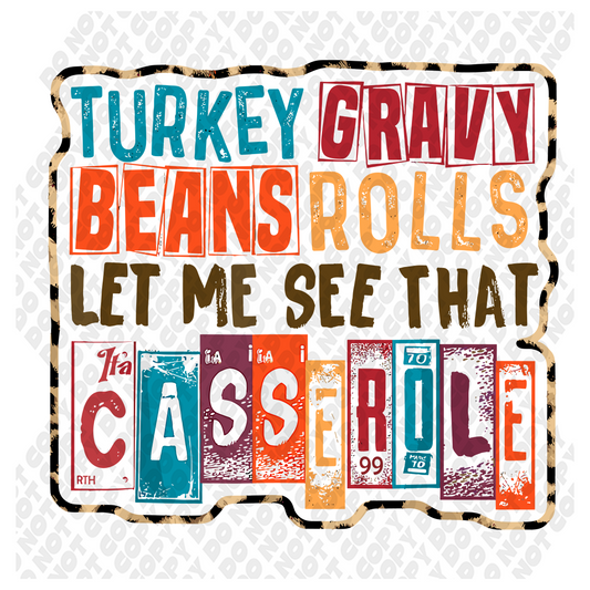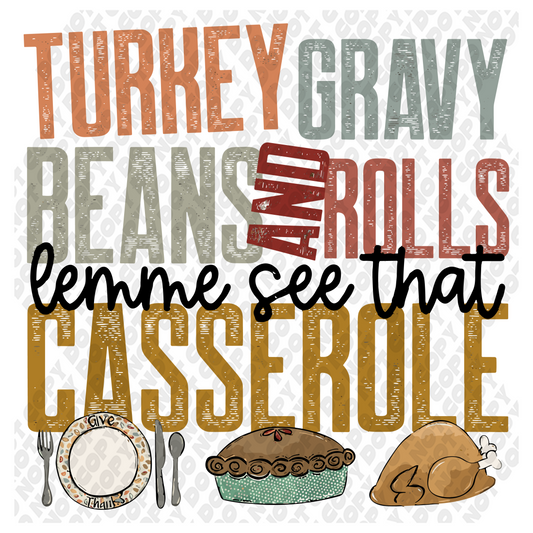 Turkey Gravy Beans and Rolls Casserole DTF Transfer