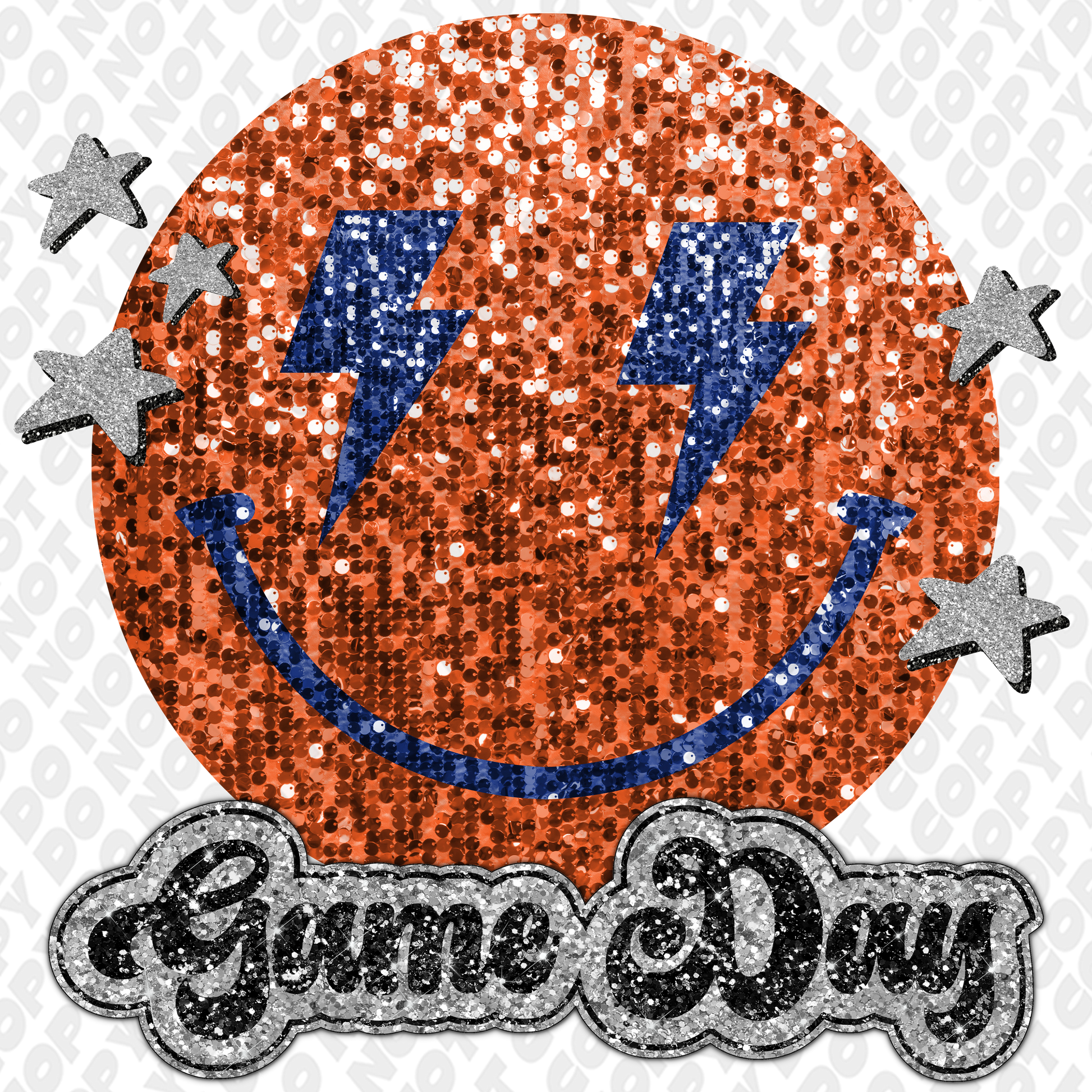 Dark Orange Dark Blue Glitter Game Day Smiley