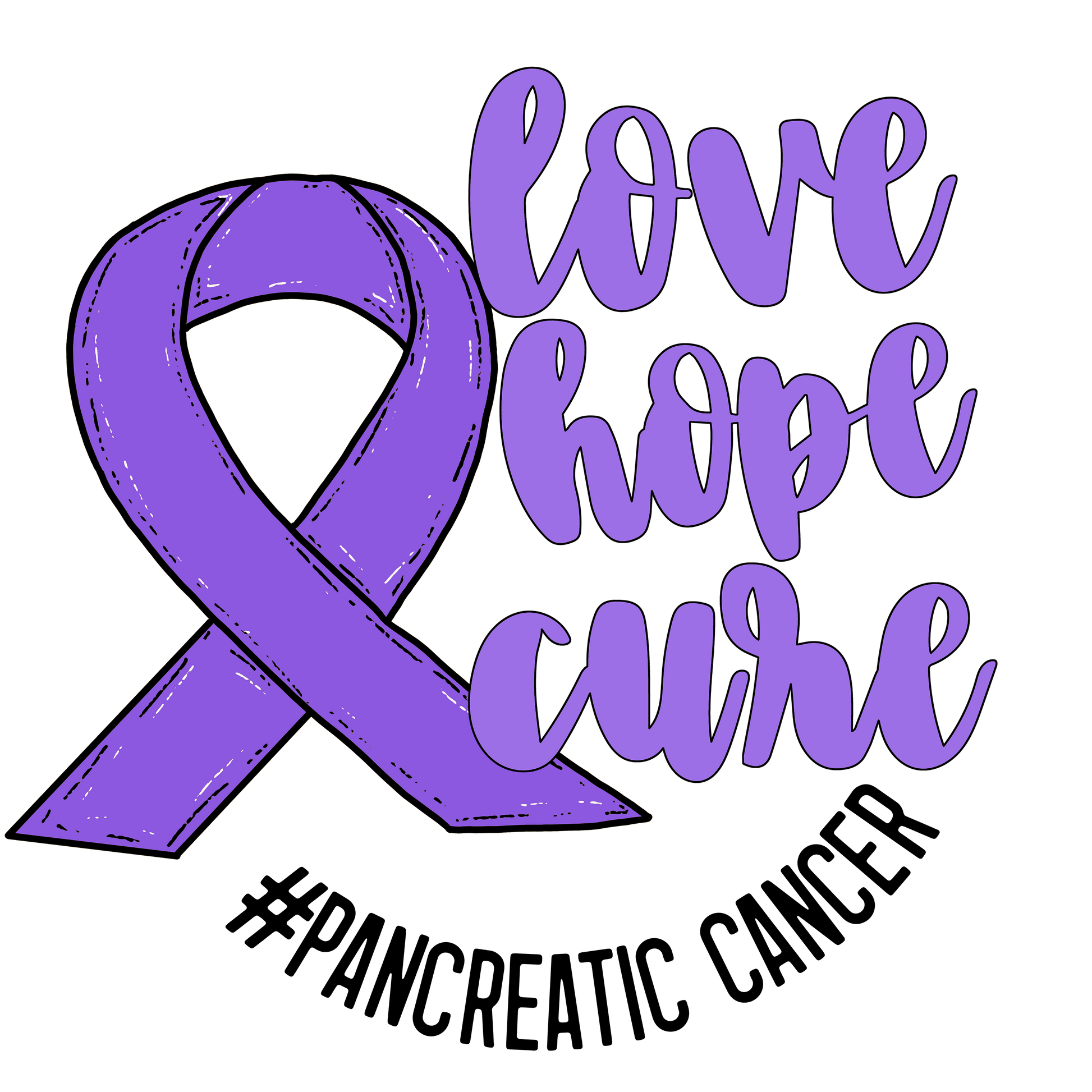 Love Hope Cure Pancreatic Cancer Purple Ribbon Awareness DTF Transfer