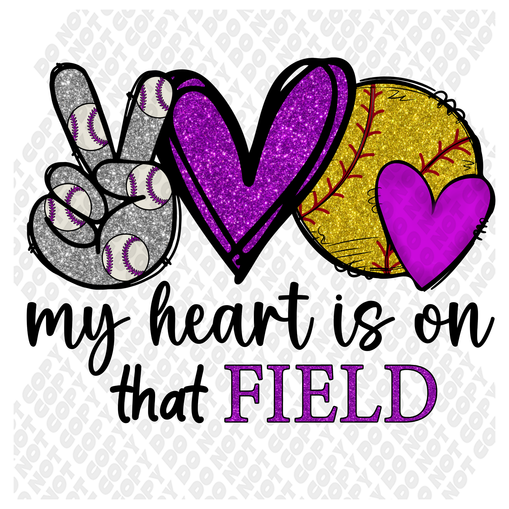 My Heart Is On That Field Softball Purple DTF Transfer