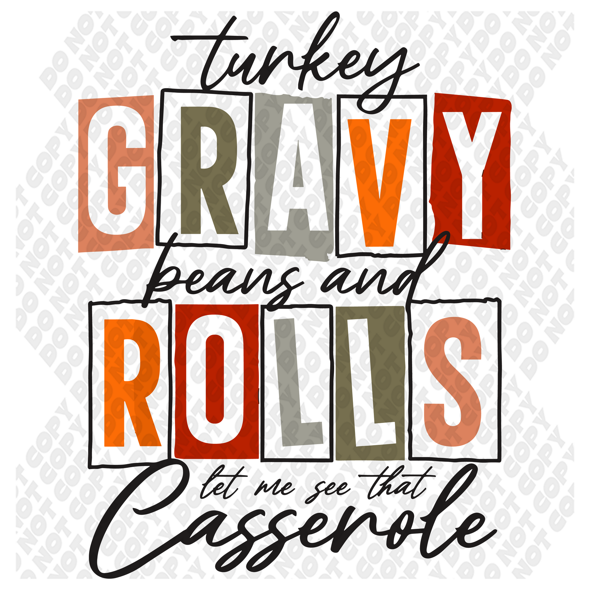 Turkey Gravy Beans and Rolls Casserole DTF Transfer